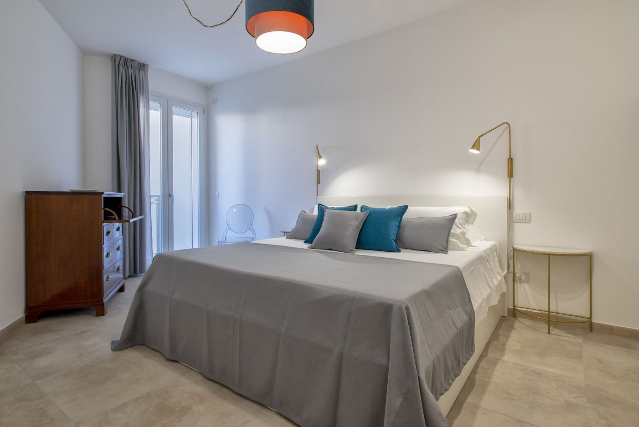 Appartamento bilocale composto da soggiorno con angolo cottura, camera matrimoniale con letto king size e soggiorno con tavolo da pranzo, angolo cottura e divano. Il bagno è finestrato e dotato di doccia. L'appartamento bilocale Grecal, ideale per 2 persone, offre anche un patio arredato per piacevoli momenti all'aperto.